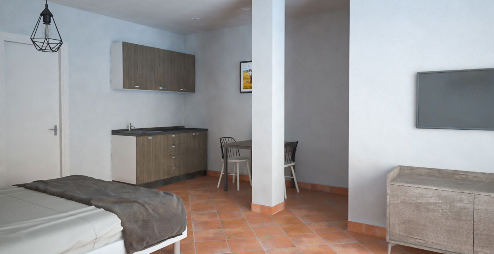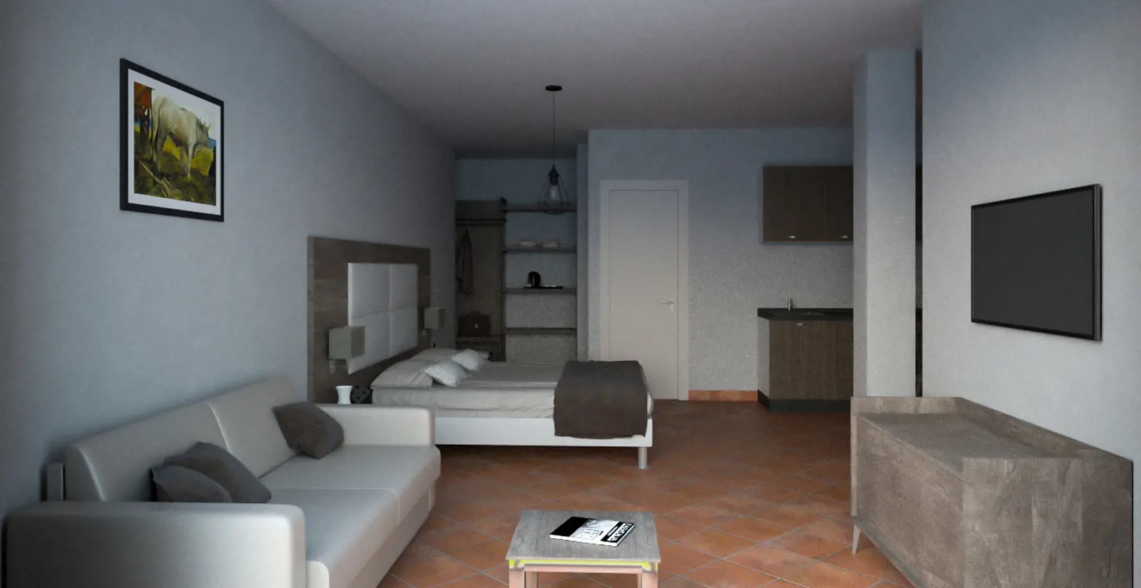 A small corner is placed to prepare a coffee or a small breakfast or to enjoy a lunch or dinner from our restaurant (take away service).