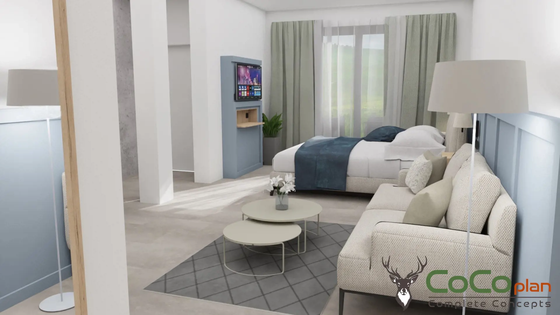 A small corner is placed to prepare a coffee or a small breakfast or to enjoy a lunch or dinner from our restaurant (take away service).